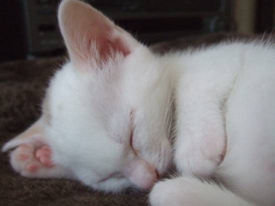 最近は夜寝る時はお母さんの足のそばで寝ています