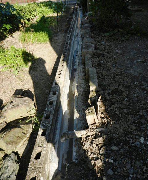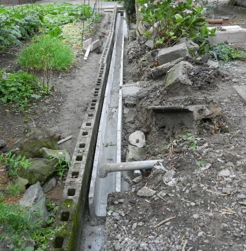 反対側の家との境の排水溝も、あ~ら、流れる。