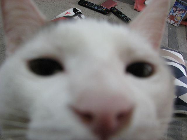 急に伸び上がって顔を寄せてきて、こんなドアップの写真が・・・。