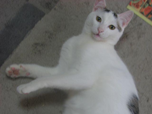 パソコンやってると、椅子の横に座ってにゃ~にゃ~。