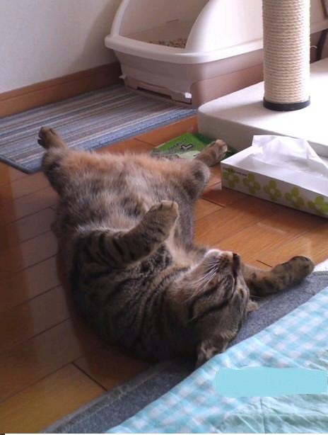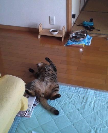 きっとモフモフ毛皮が暑いのでしょうね(笑)