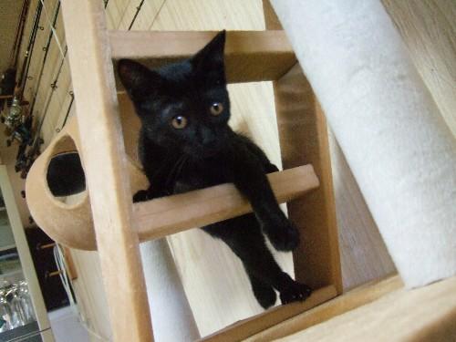 帰るときも鳴き通しだったが家に着くなり マイ塔へ