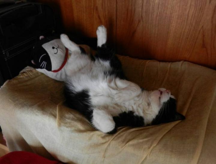 黒タンったら、ひっくり返ってる。