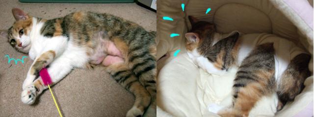 ぺりぺりとテープを剥がし包帯を取るとさっそく毛繕いを始めました。