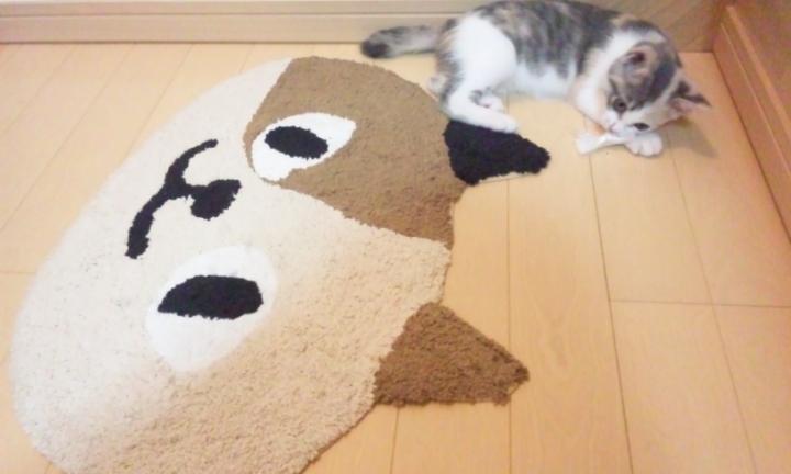 ↑ゲート設置数日前に撮った、ミケ(玄関マット)とミケ(ナナ)