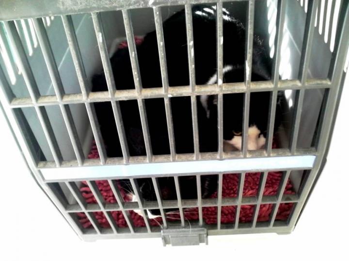 黒タンは私がキャリーを出している姿を見て、さささ、と逃亡を図るも察知され確保される。