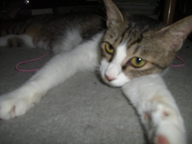 今、地震がありました。伸びきっていた にゃちゃん もびっくり!