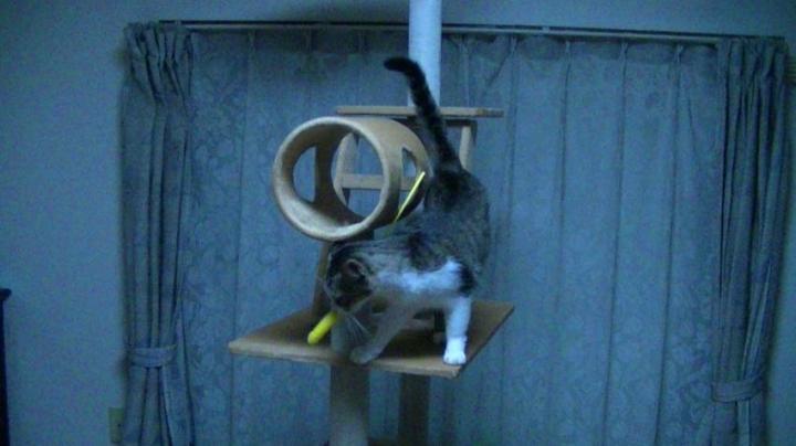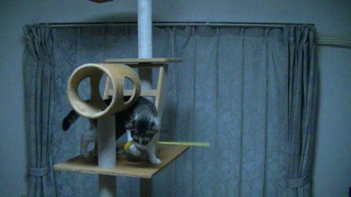 さてタイトルですが、先日購入した猫じゃらしが結構お気に入りのご様子。相変わらずお気に召さないキャットタワーの上に乗っけたら、取り敢えず駆け上って、猫じゃらしだけ奪ってすぐ降りていきました。