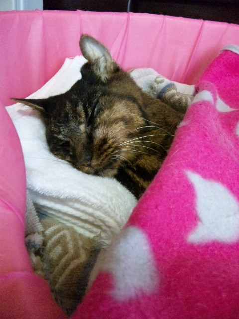 輸血ができず、木曜の夜に自宅に帰り、再度金曜日の朝に病院に連れて行きましたが、、インスリンも効かなくなってきていたし、貧血もひどいので、ななちゃんの大好きな家で最後までみんなと過ごそうと決め、金曜の午後にななちゃんを連れて帰りました。