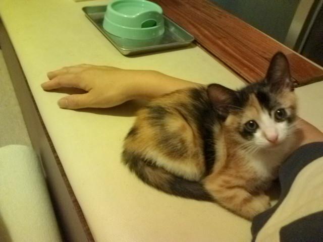 ミケちゃんは腕に寄り添ってきました。