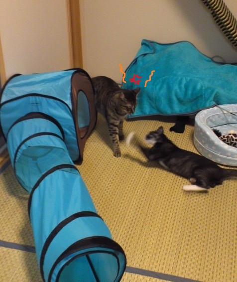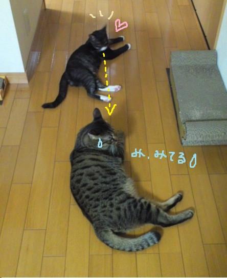 始めはお互いいい感じの距離を保って様子を見ている。