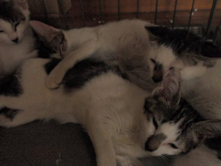 少し大きくなり、子猫4匹ちゃんは元気いっぱいです。