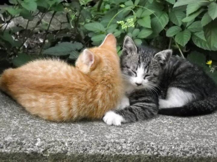 お互いが枕になって、よく寝ています!