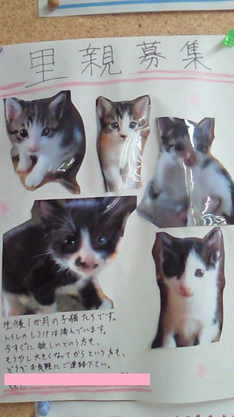 友人の言う通り トイレの男女を分ける壁が掲示板になってて 里親募集のチラシがペタされてた。