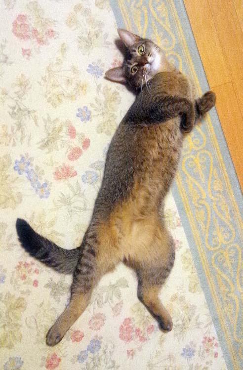 帰宅後、クールなものでスリスリよりも静かな空間を邪魔された感の二匹。
