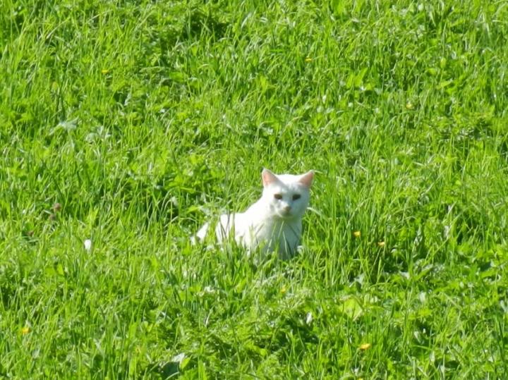 青々と茂った原っぱを見たら、白い物がちらちら。