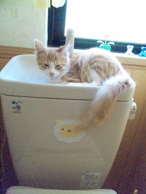 ここにいられるとトイレの水が流せませんので、ちょっと邪魔ですね。