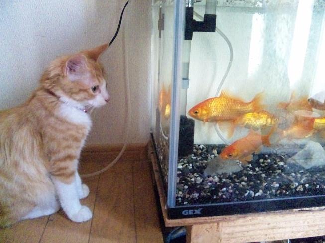 うちの玄関には大きい金魚さんがいるのですが、その子達を見るのが楽しみらしいです。