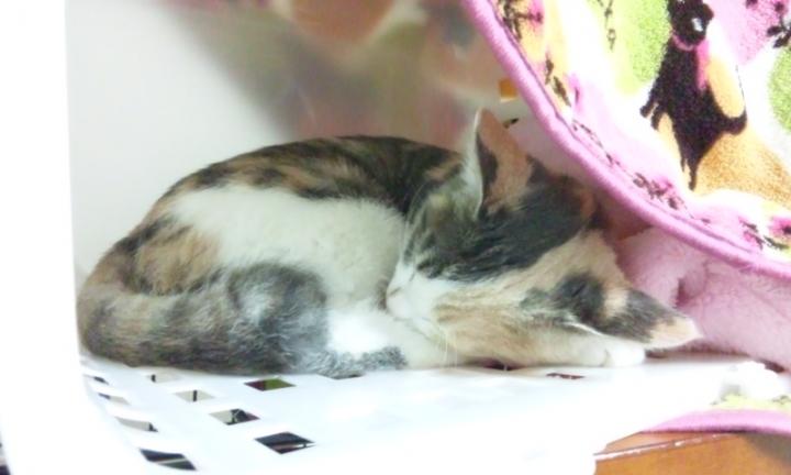 ↑洗濯カゴの中で寝てしまったので、ブランケットをかけました。