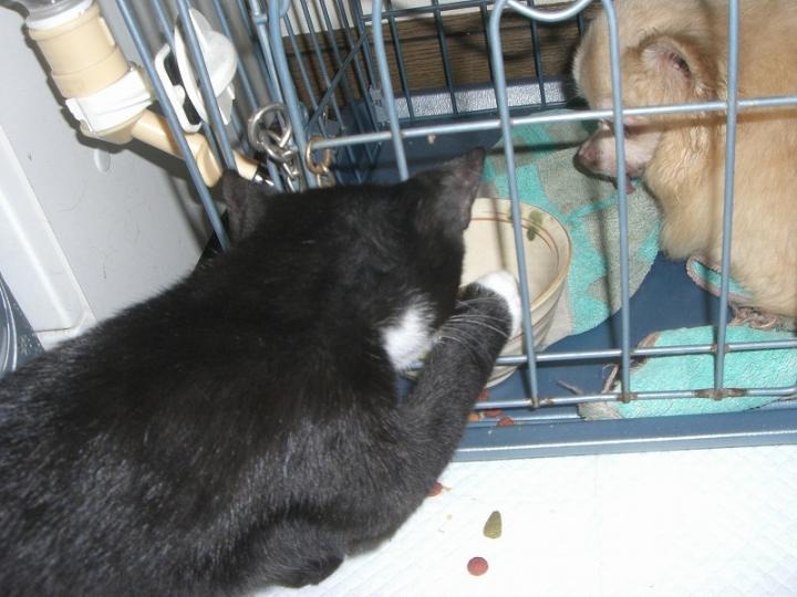 みゃあこが思ったか思わなかったかはわからないが、みゃあこはのらが自分の残したご飯を全部食べるのが悔しかったのかな それからのらはじーちゃんチワワのコロの餌もこそっと、手を伸ばしお茶碗からドロボーした。本当にうちの犬は子猫には甘いんだー