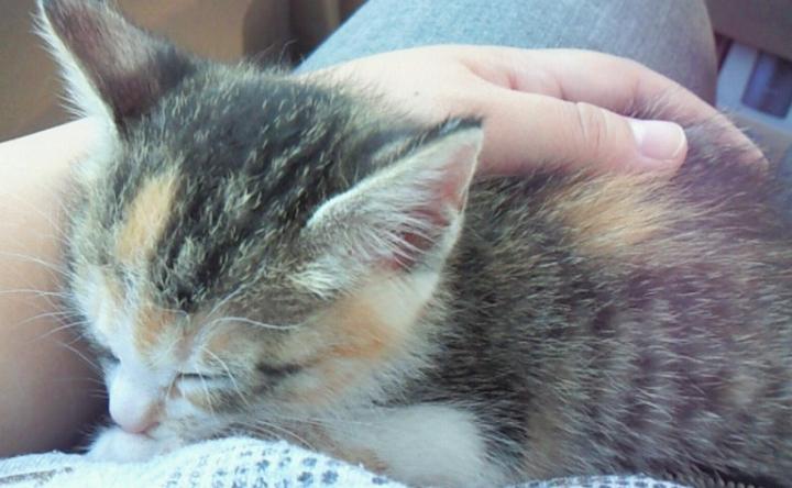 車に乗って20分くらいみーみー鳴いてたけど 鳴き疲れたのかあとはうとうと。・゜