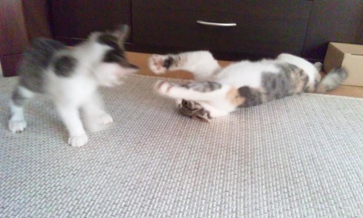 昨日からプロレスは続き、猫ミサイルが飛び交っています。