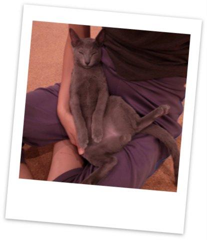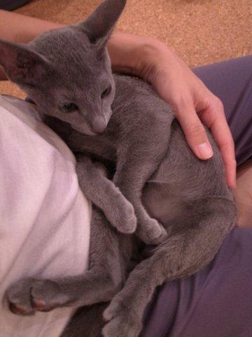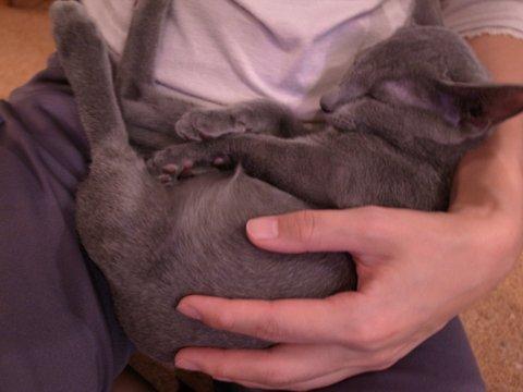 撫でていたら膝の上に顔を乗せたり手を置いたりしてたので、抱っこしてもいいのかな?と思って(それまでは抱っこしようとすると逃げられていた)、そおっと抱き上げてみると、まったく抵抗しない。