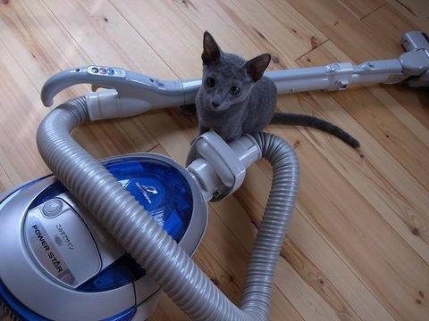掃除機が嫌いっていう猫が多いと聞いていたので、セイはいったいどんな反応するんだろうか?と。