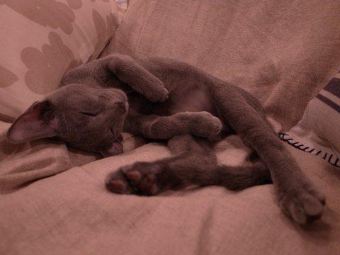 この日はなぜか猛烈にハッスルして元気に遊びまくっていたセイだけど、夕飯のあとはその疲れがどっとでたのかな?