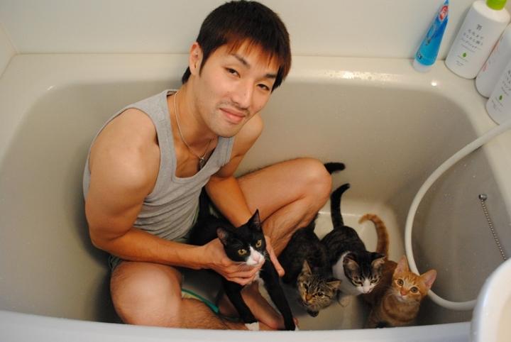 今日はひとりずつ、も父さんと一緒にお風呂に入りました。