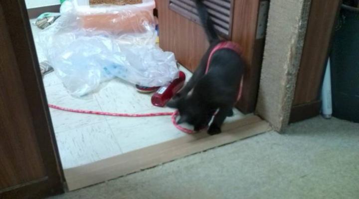 ヒモで遊んでるだけなのに、どうして散らかるのかな。