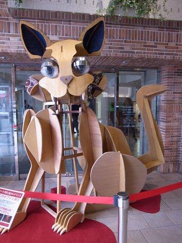 駅ビルの広場には巨大猫のオブジェが飾ってあって、すぐ脇の案内所ではねこ祭りのパンフレットやマップを配布しています。
