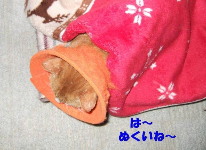 ぬくぬく毛布も頭までかぶれないもんね(^^;