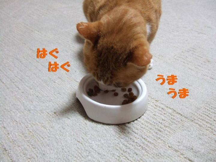 野良生活してたせいか、それとも食べ難いお皿なのかな?