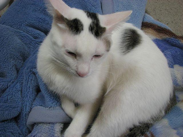 写真は、せっかく毛布の上で寝ていたのに、起きてしまったロアくん。