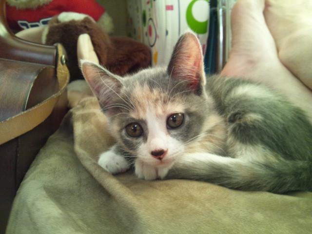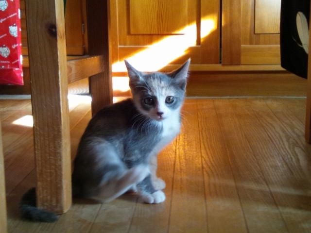 ネコジルシに里親募集を出していた親切なお兄さんに拾われた三兄弟/姉妹のうちの一人を引き取らせていただきました。お兄さんのお家では、「写真でも何でも何故かいつも真ん中にいる」という理由で、便宜的に「まんなか」と呼ばれていたそうなので、