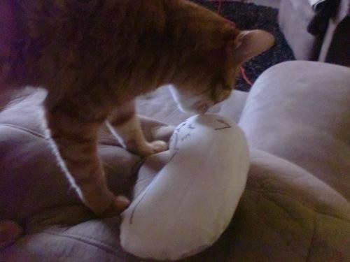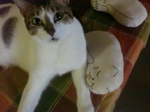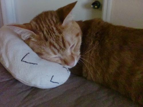 寝てる猫のデザインでお腹の辺りのカーブが頭にちょうど合うんですね。
