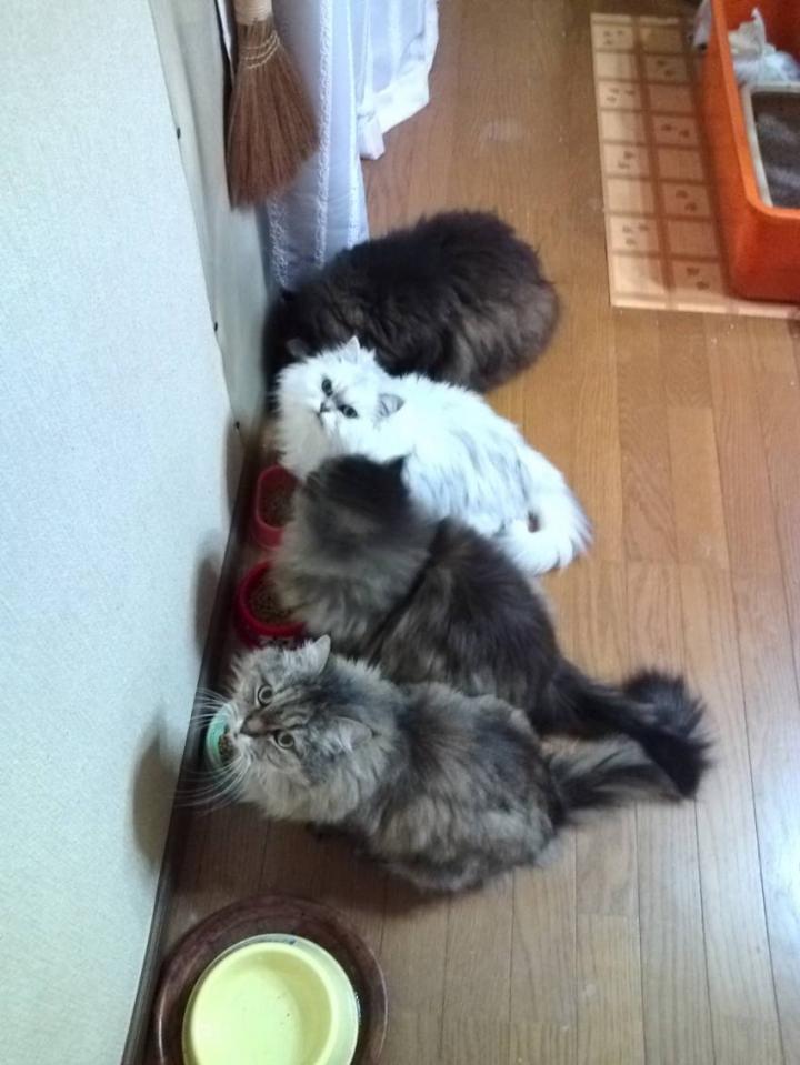 この画像は、下からマユ君、ミミちゃん、ノンちゃん、モコ君