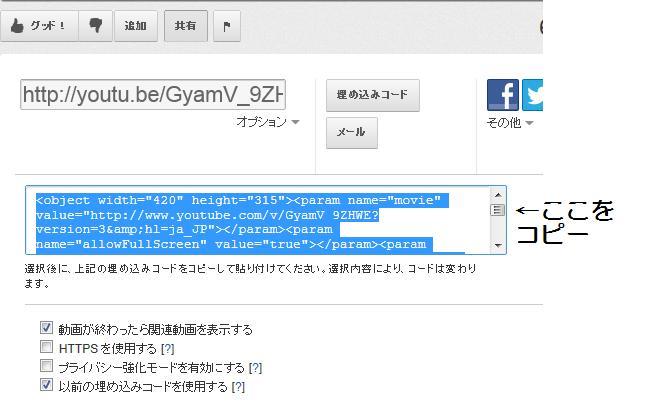埋め込みコード の以前の埋め込みコードを使用するにチェックを入れて