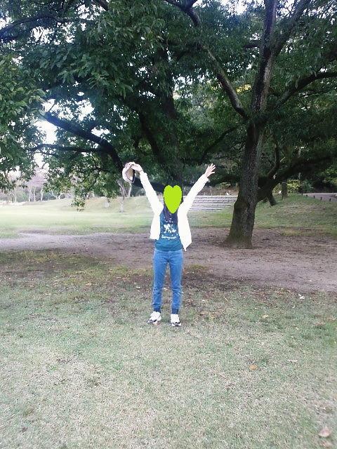 反抗期中の中学娘もこのポーズ♪緑の木々が気持ちいいね\(*^▽^*)/