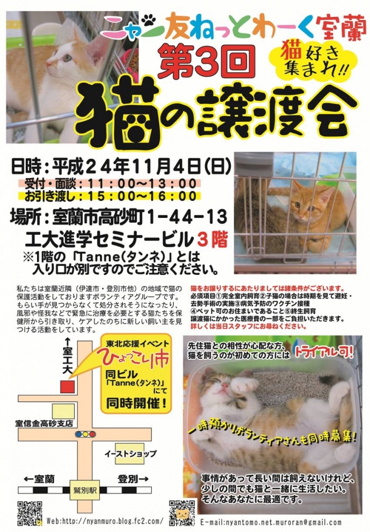 「猫カフェ」&「譲渡会」・・室蘭市(東日本ハウス展示場)・・9/15