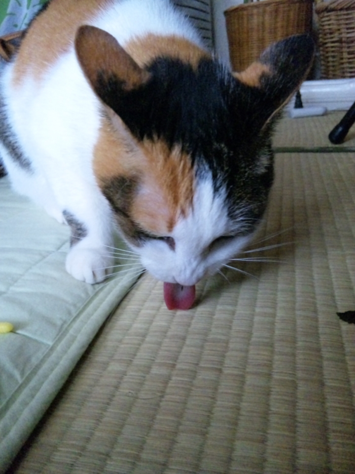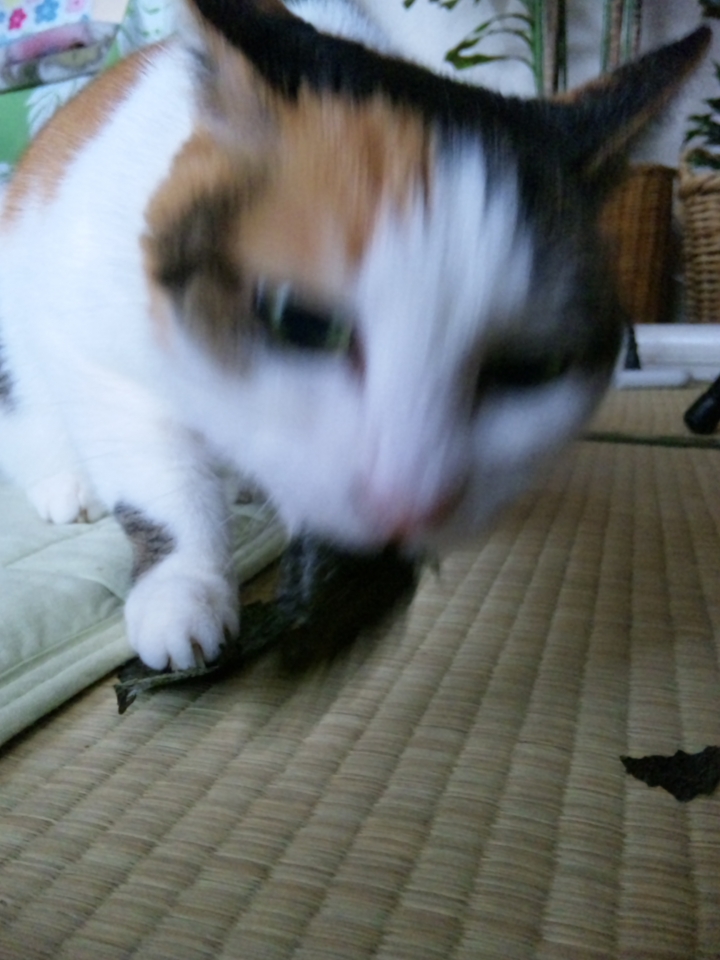 ちなみにちーくんは手で持っていてあげないと食べられません。こんなにうまく食べれるのはチャコだけです~(笑)