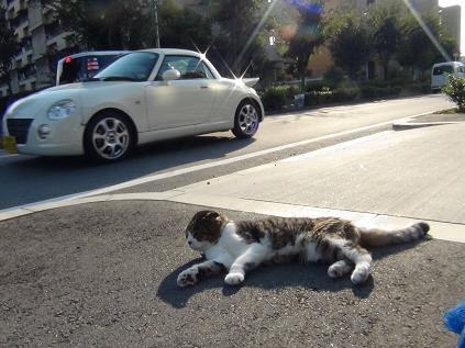 (ぎゃ~(*o*) くつろぐ場所があぶない! 横は府道168号線です