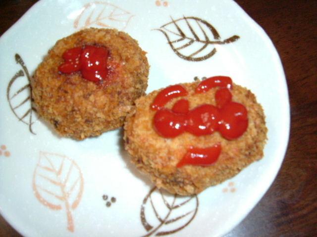 チコママと娘がコロッケを作ったのでケチャップでお絵かき。
