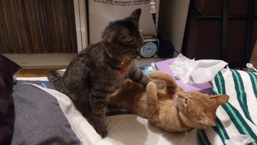 海栗がようやく、ネコ同士で遊ぶようになりました。