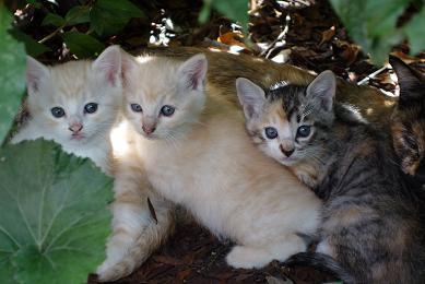 でも…ちょっと…ミイも雌、三毛も雌、クリームもはっきり分からないが1匹は雌に見える。ひゃ~~!!大変大変!