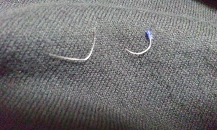 ↑玉留めされた糸とその後切った糸