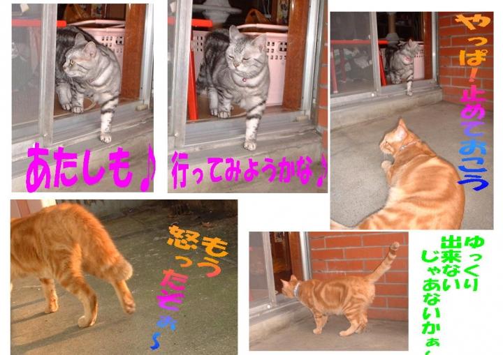 モモとケンは今まで一度もベランダに出たことがありません。