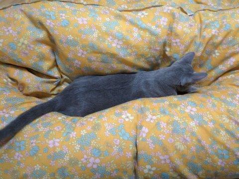 大満足した様子で、そのあとはお花畑(羽毛布団)にどっぷりと沈み、今はぐっすり夢の中~・・・・・・