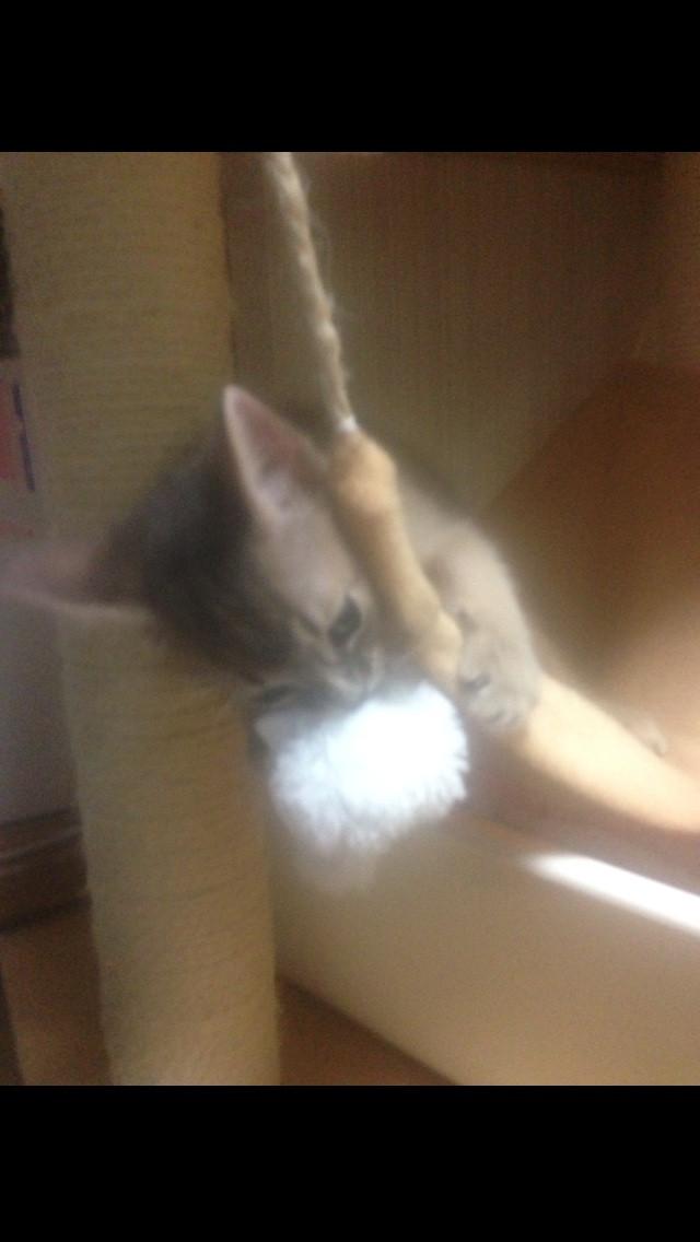 只今、猫のストラップとファイト中。